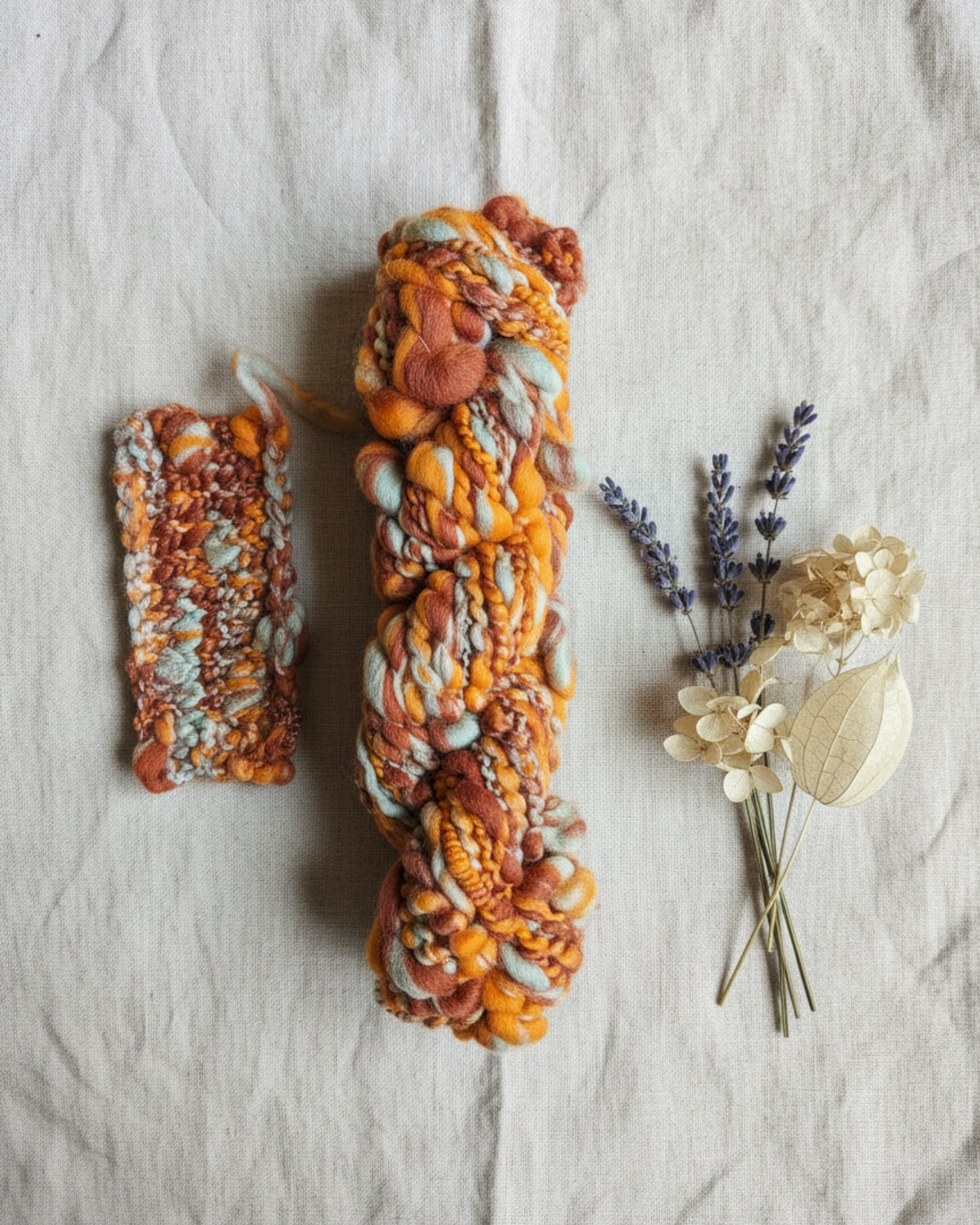 Con el tiempo decidí no solo hilar fibras, sino también convertir los restos de proyectos en hilos únicos que son irrepetibles."