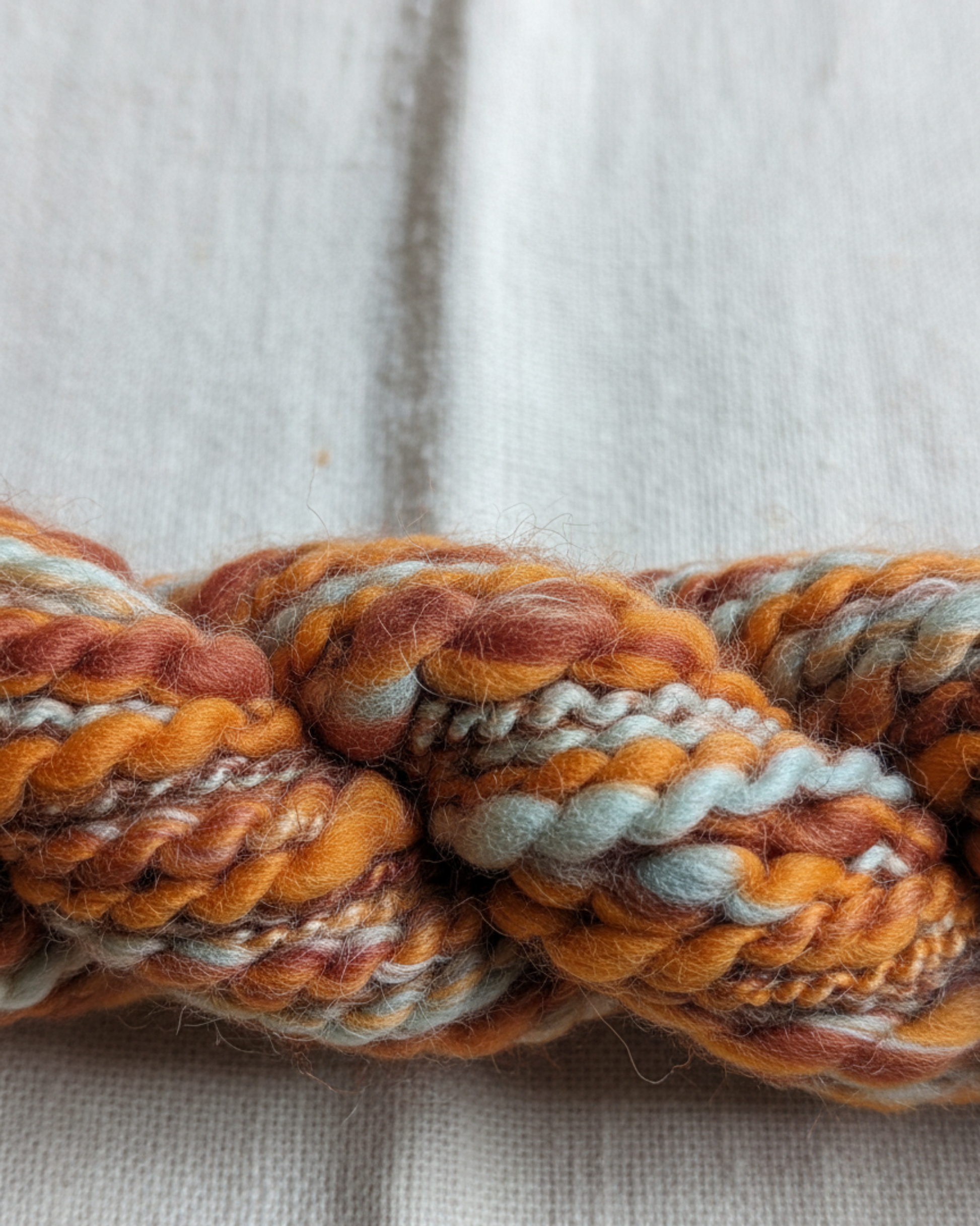 Llegué al hilado a través del tejido después de la pandemia en 2021. Aprendí por mi cuenta en YouTube, luego conocí a varios hilanderos y finalmente decidí unirme al gremio. Siempre supe de la existencia de los hilos artísticos y un día me pregunté: ¿cómo se hace?