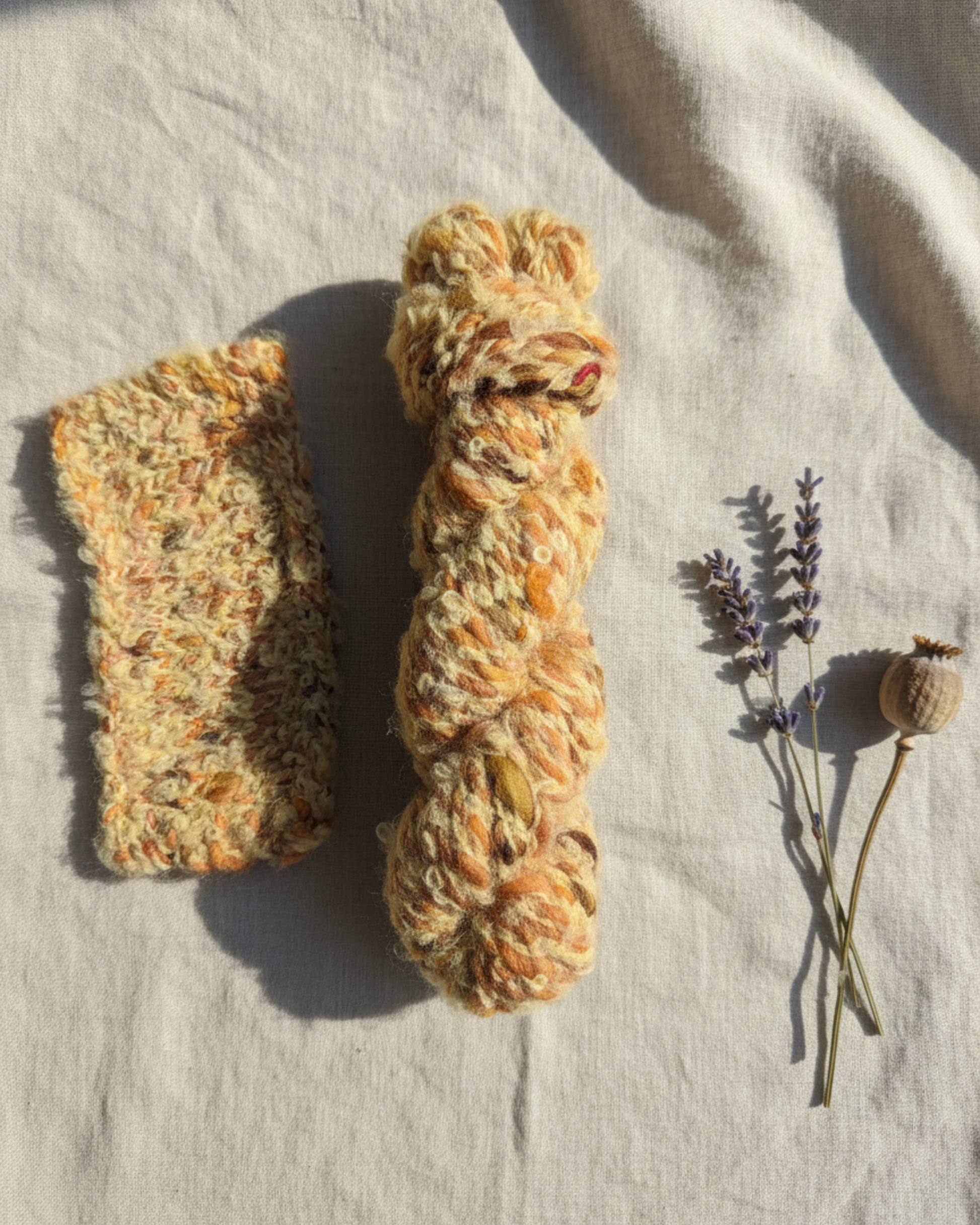 Estás lanas son únicas e irrepetibles, hiladas a mano y traídas de Rusia.