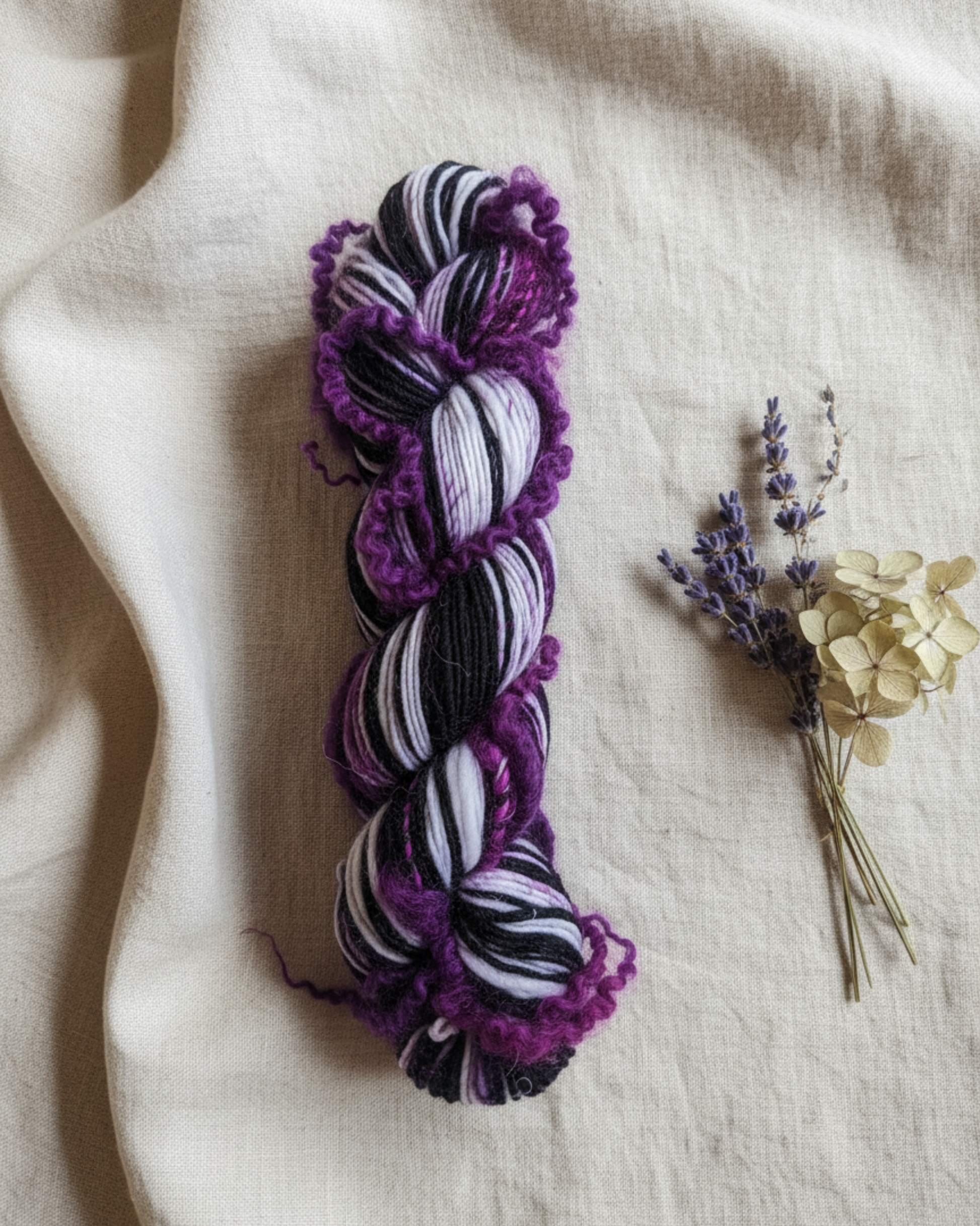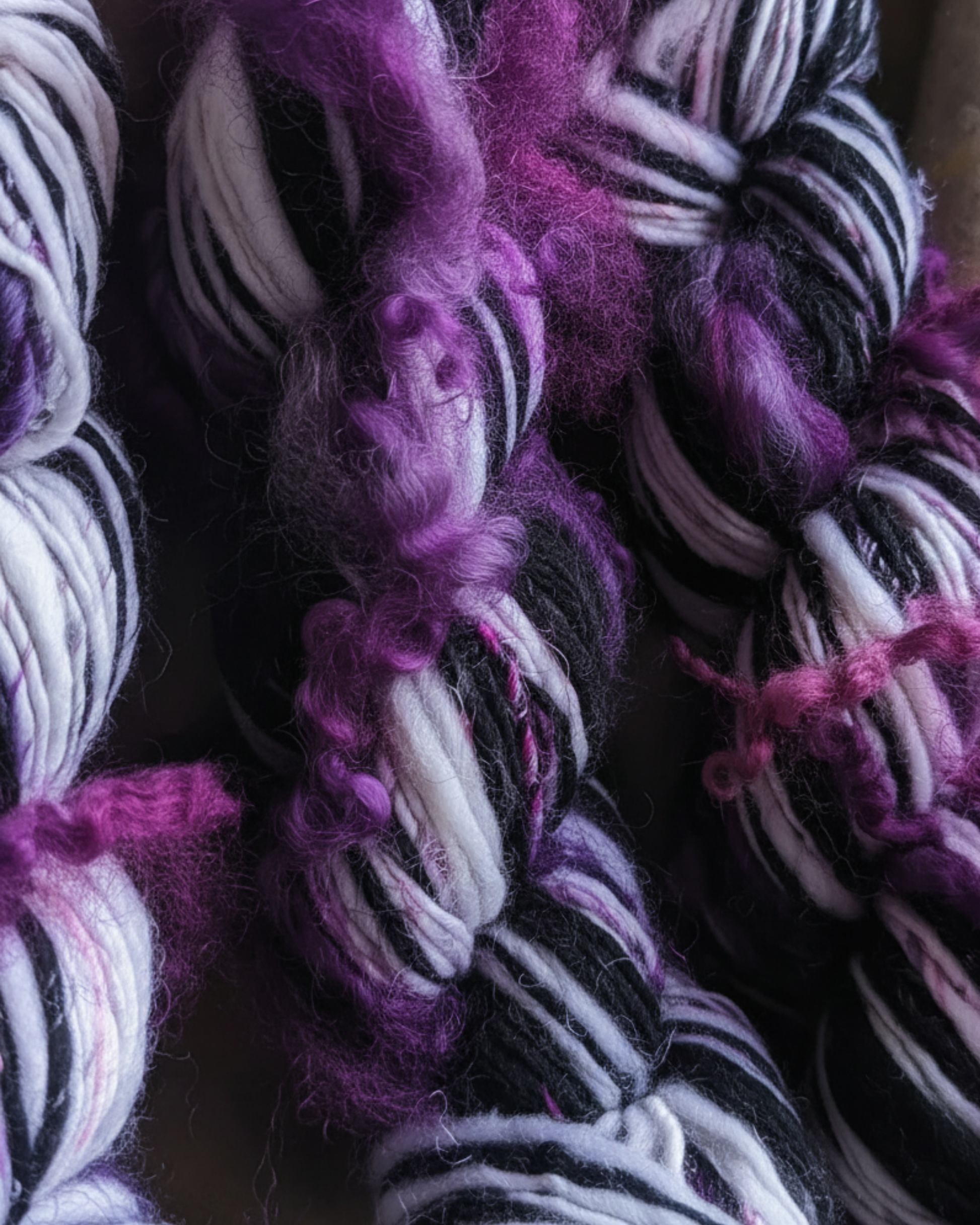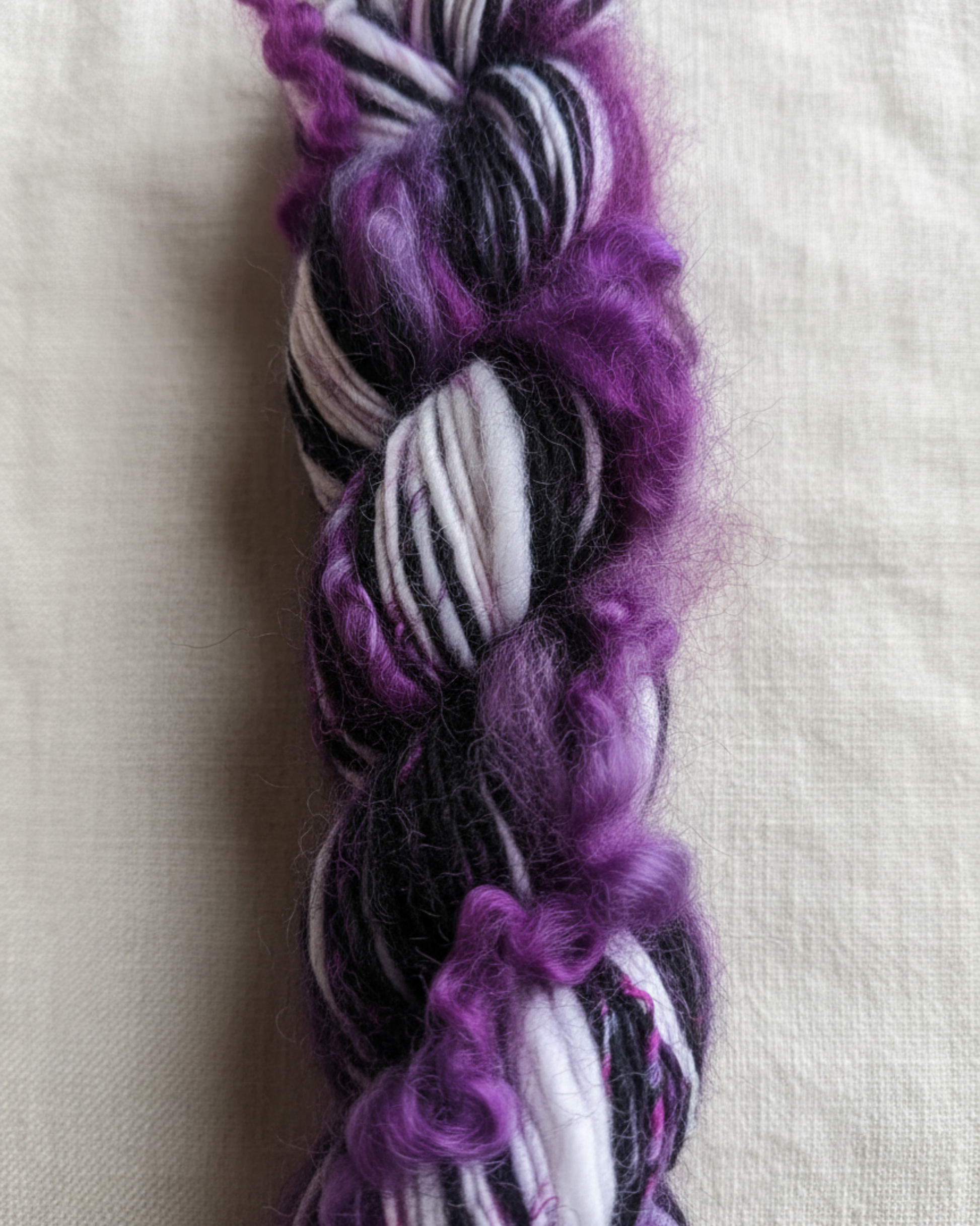 Llegué al hilado a través del tejido después de la pandemia en 2021. Aprendí por mi cuenta en YouTube, luego conocí a varios hilanderos y finalmente decidí unirme al gremio. Siempre supe de la existencia de los hilos artísticos y un día me pregunté: ¿cómo se hace?